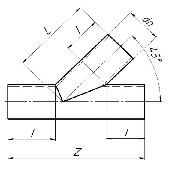 Модель Тройник косой 45 градусов сварной PN 10 ПЭ 100 SDR 17 110 мм